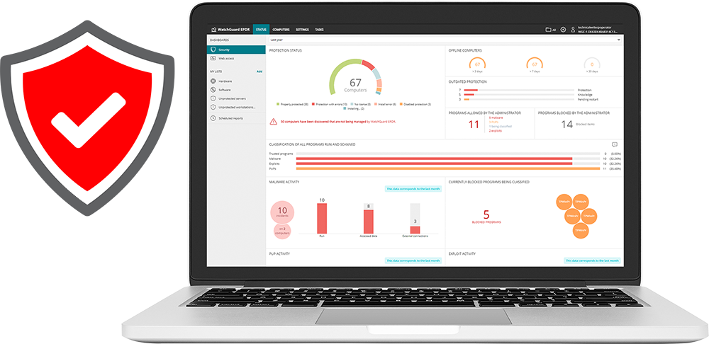 WatchGuard Endpoint Security adalah solusi perlindungan endpoint generasi terbaru yang menggabungkan Next-Gen Antivirus (NGAV) dengan Endpoint Detection & Response (EDR) dalam satu platform terpusat. Berbeda dengan antivirus tradisional, WatchGuard mampu menganalisis perilaku aplikasi dan proses untuk menghentikan ancaman zero-day, memberikan visibilitas penuh terhadap aktivitas endpoint, serta memastikan hanya aplikasi yang aman yang dapat berjalan melalui layanan Zero Trust Application. Semua pengelolaan dilakukan melalui WatchGuard Cloud, sehingga perusahaan dapat dengan mudah mencegah, mendeteksi, dan merespons ancaman siber secara real-time, tanpa mengganggu kinerja perangkat pengguna.